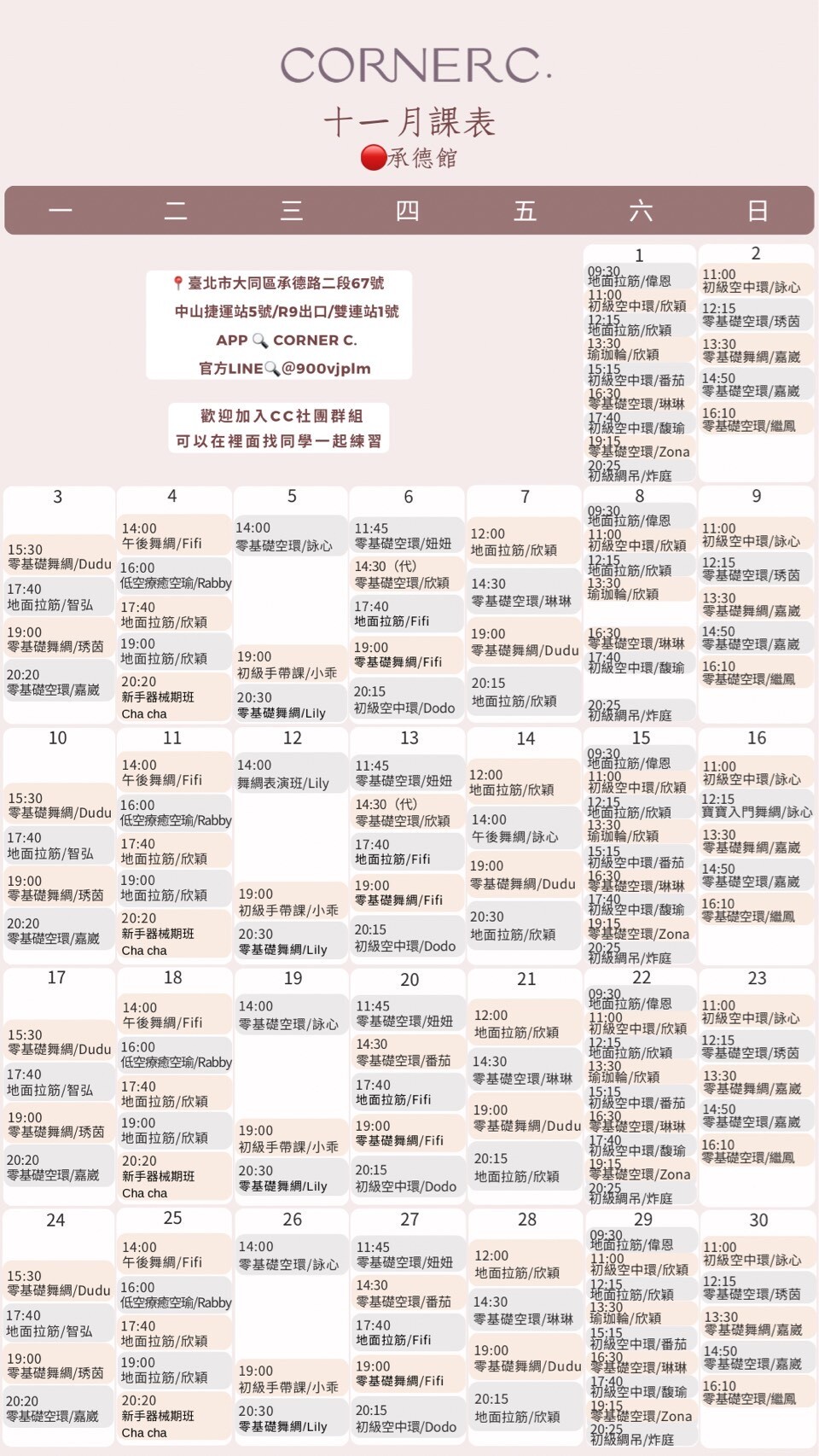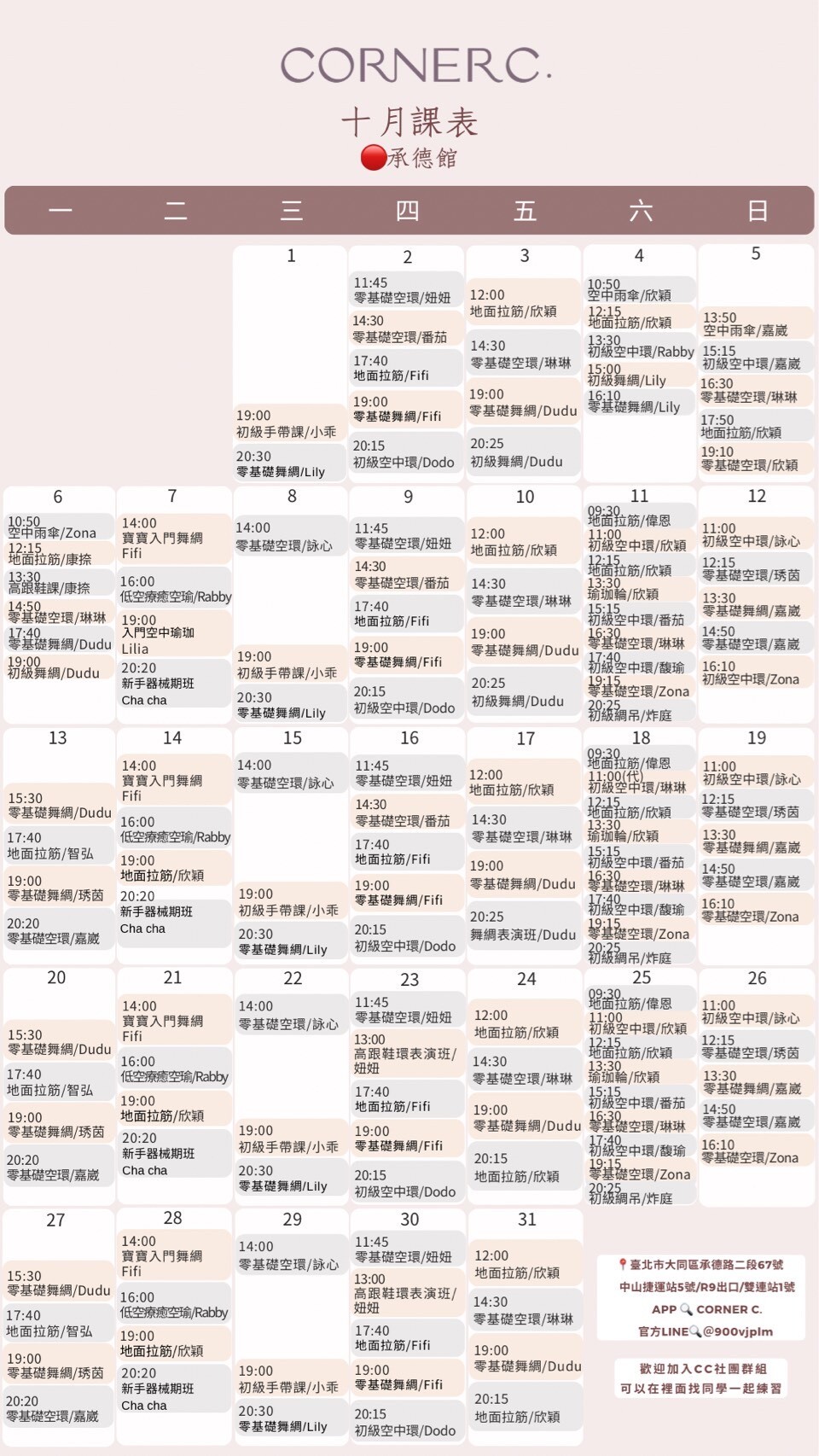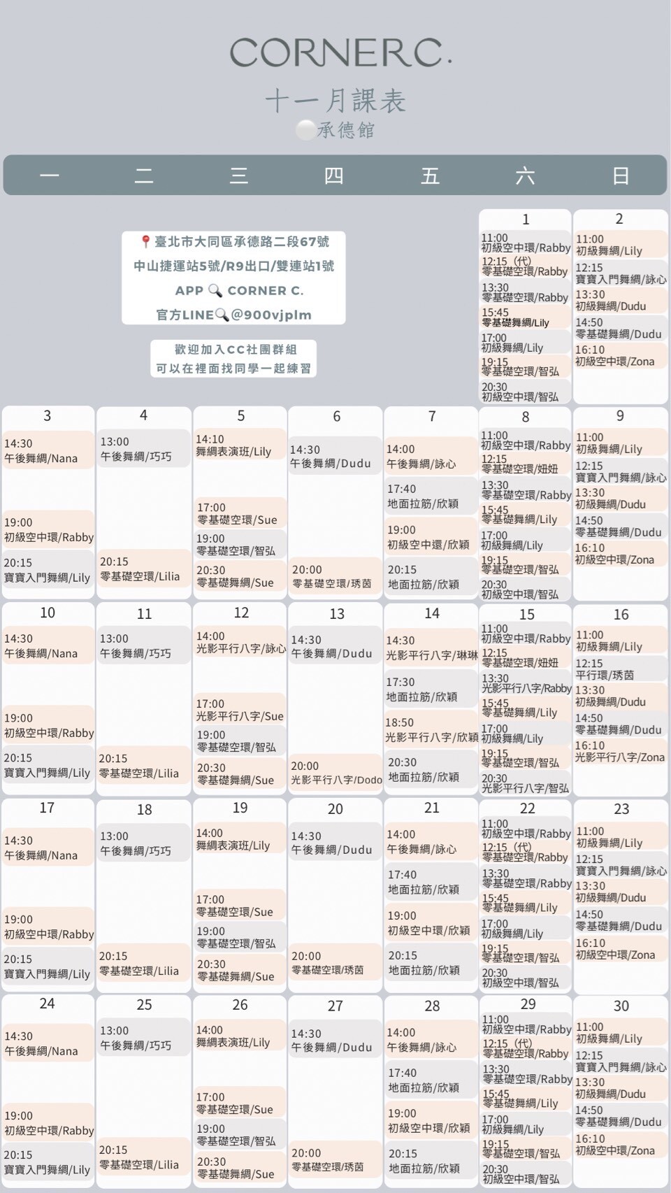 每月課表